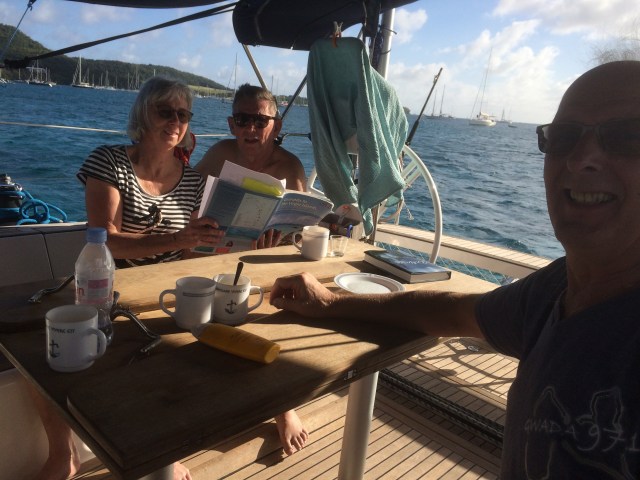 Nu ligger vi för ankare i viken utanför Le Marin . Vi har badat i det turkosblå vattnet och förbereder oss för morgondagens seglats.
