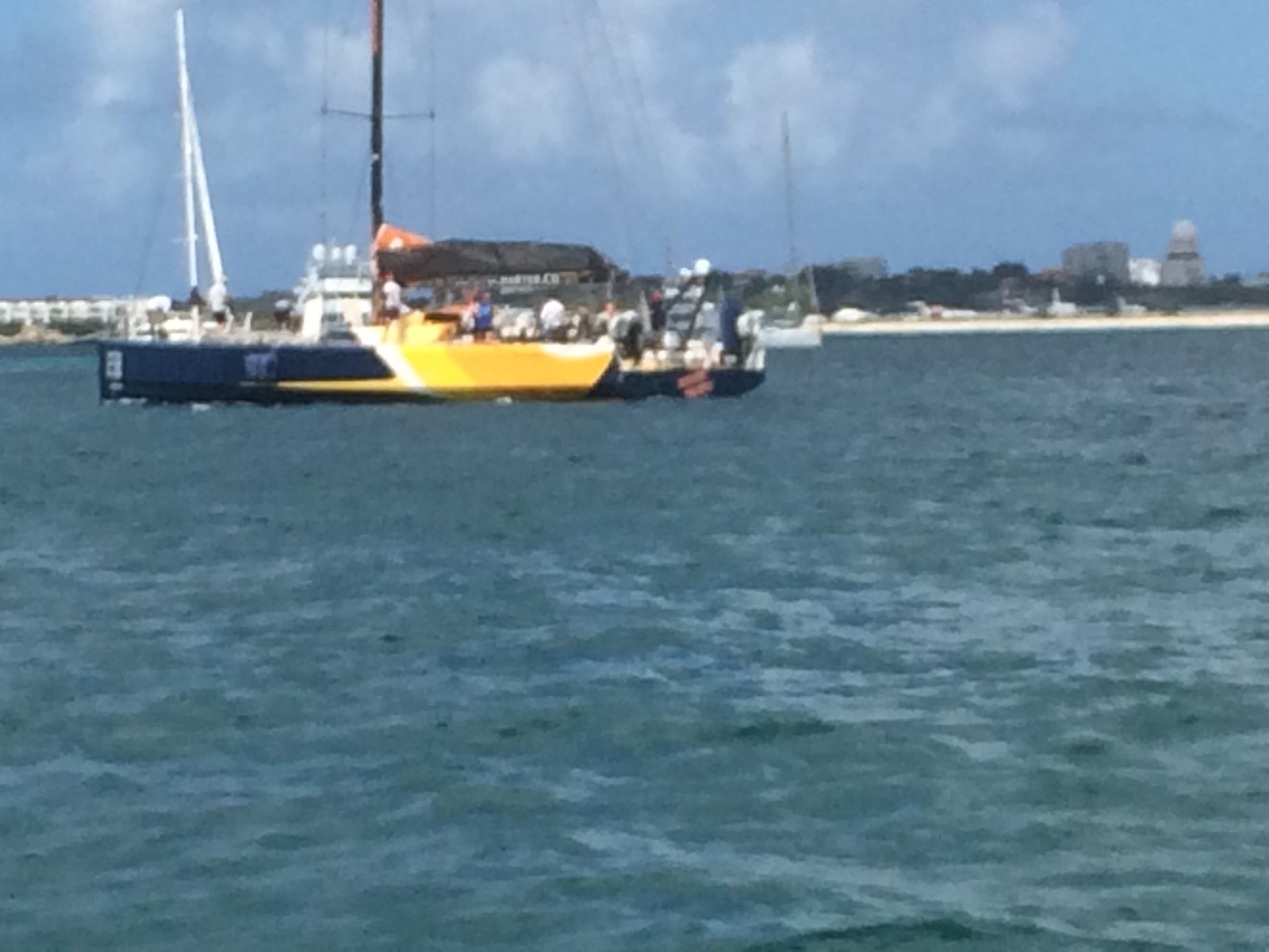 Nu är vi på ankare i Simson Bay . Regattabåtarna kommer i stim och registrerar sig.
