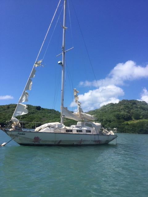 Denna segelbåten hittades här utanför efter att ha drivit omkring flera månader på Atlanten . Skepparen satt vid navbordet mumifierad !