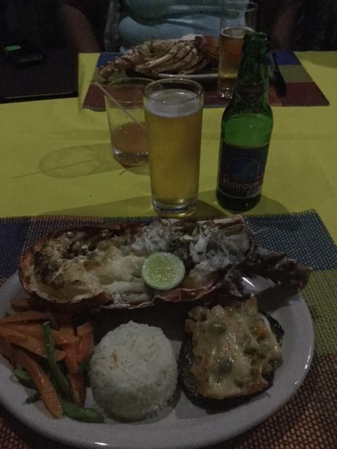 Basils Bar höll på att totalrenoveras så vi fick skjuts till en restaurang högt upp . Vi kunde inte låte bli hummermenyn !