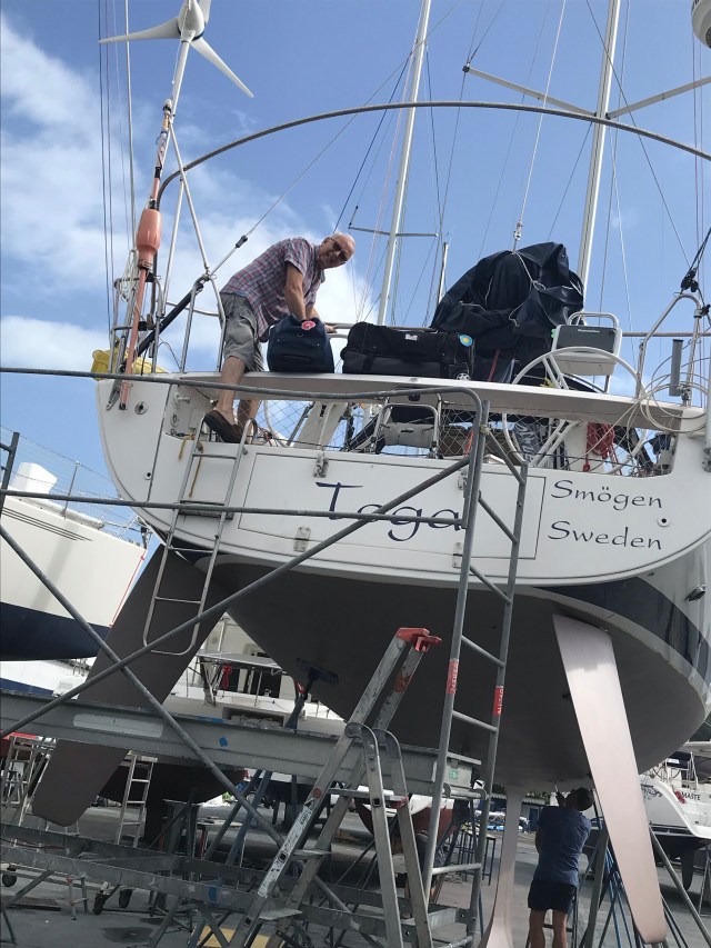 Lennart, Lena, Lisbet och Ingemar anlände till LeMarin 6/11 för att förbereda sjösättning av Toga.