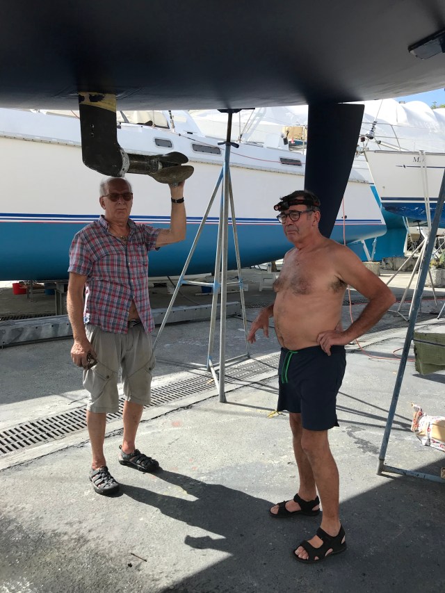 Ingemar o Lennart poserar vid drevet som är målat med bottenfärg .