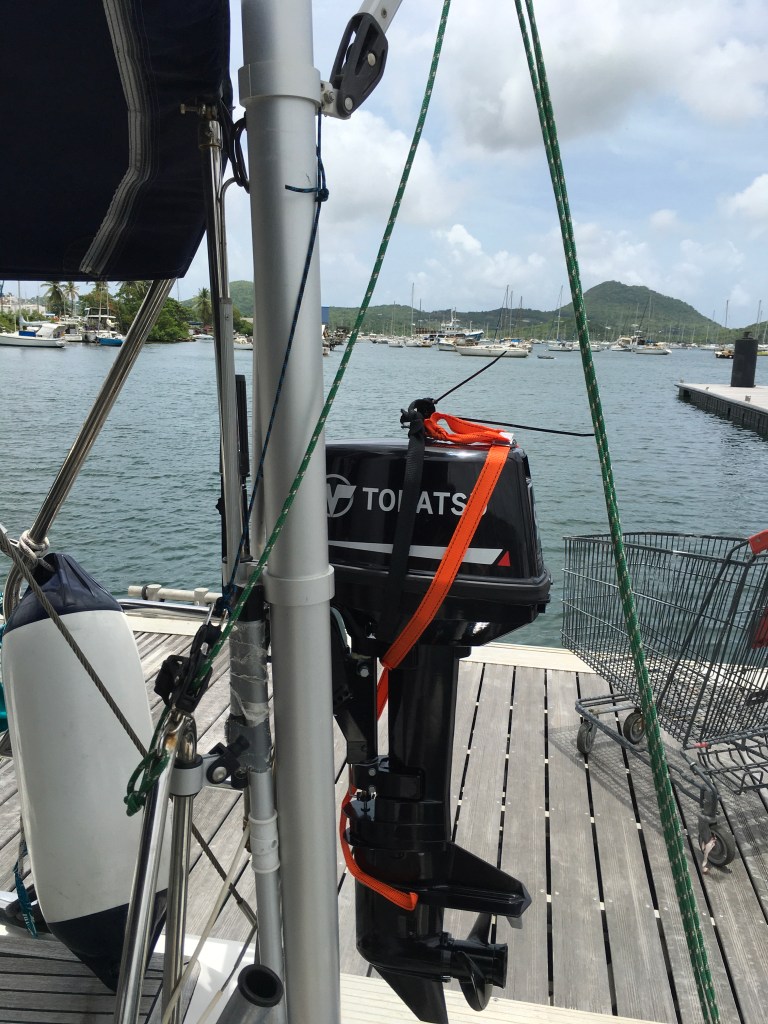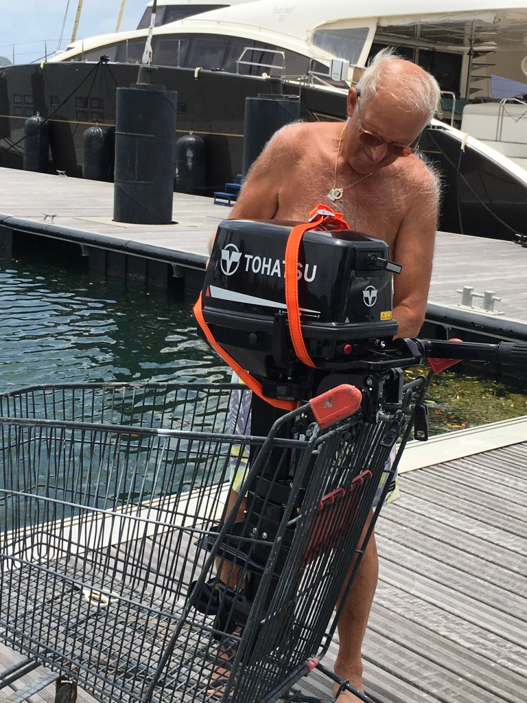Vi missade vår middag ute igår pga av utombordaren la av . Istället fick vi uppleva ett rejält skyfall och åskväder ombord.Efter flera tappra försök igår blev vi tvungna att snabbt hitta en ersättare till vår utombordare. Långpromenad till centrum innan de stängde för dagen. Nu är den på plats redo att transportera oss.