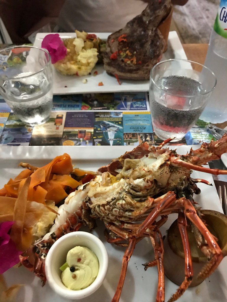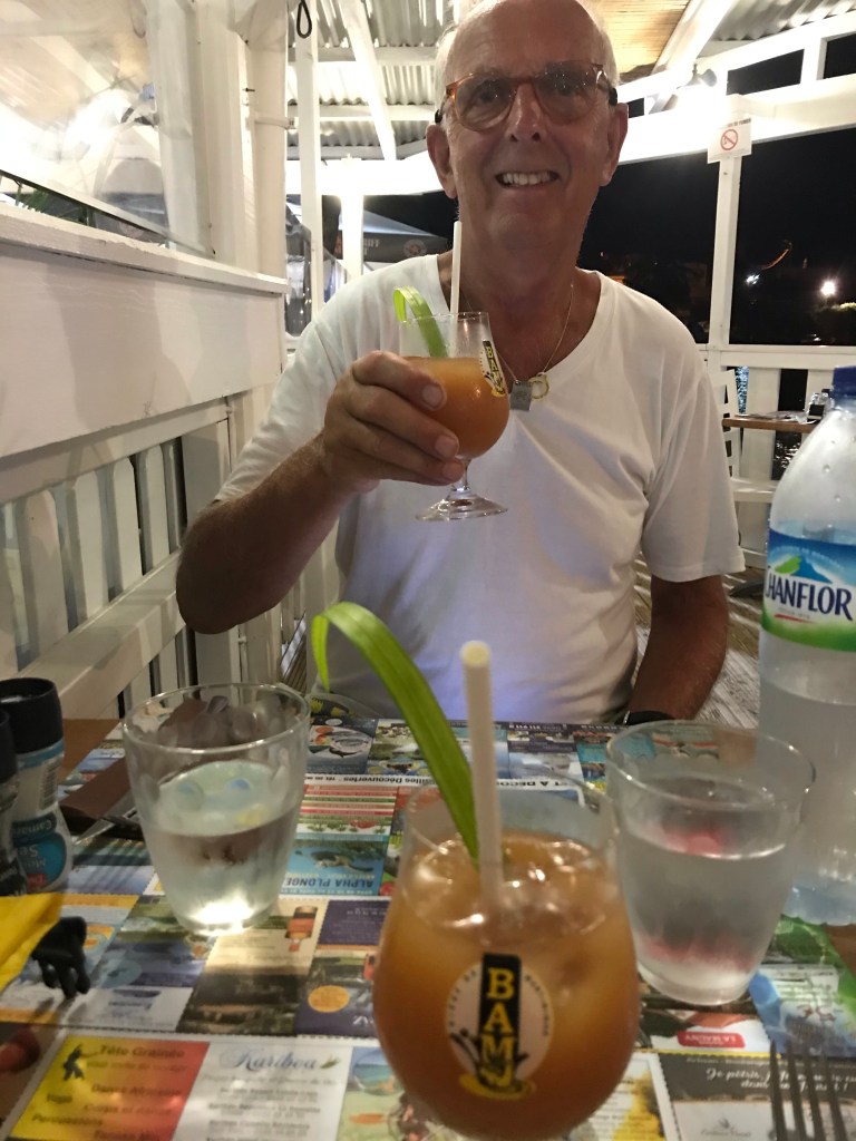 Vi har nu några veckor utan landkänning som väntar så vi passade på med ett restaurangbesök på St Anne innan tidig avsegling imorgon⛵️ Vi fick ett snabbt race in med vår nya utombordare till dingebryggan. Äntligen har vi fått in vår första Rumpunch . Den smakade perfekt. Nu väntar en entrecote och languster till middag.