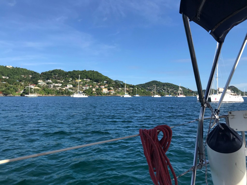 Anropade Port Louis för karatäntegistrering. Temp kontrollerades och vi fick info om karantän i 10 dagar på båten .Vi lade oss på svaj i speciellt område. Ganska många båtar låg där och väntade. Nu börjar dag 1 ! Lena har skrivit en att göralista som säkert tar en vecka ! Lennart började med att fixa lite med utombordaren .Lena hoppas också på att hinna läsa lite och sticka under dessa dagar.Som sagt så ska vi försök få tiden att gå med många kaffe med dopp ( bad alltså ) . Vi kommer att ha ett längre uppehåll med bloggen då vi måste hitta en lösning med ett lokalt simkort som vi köpt.