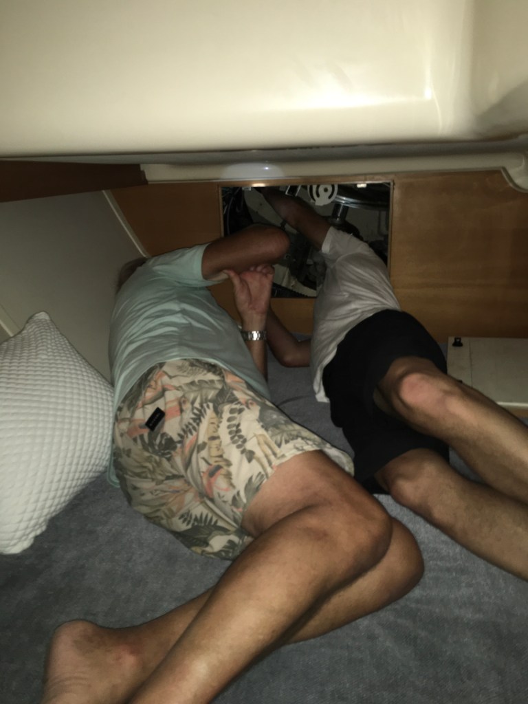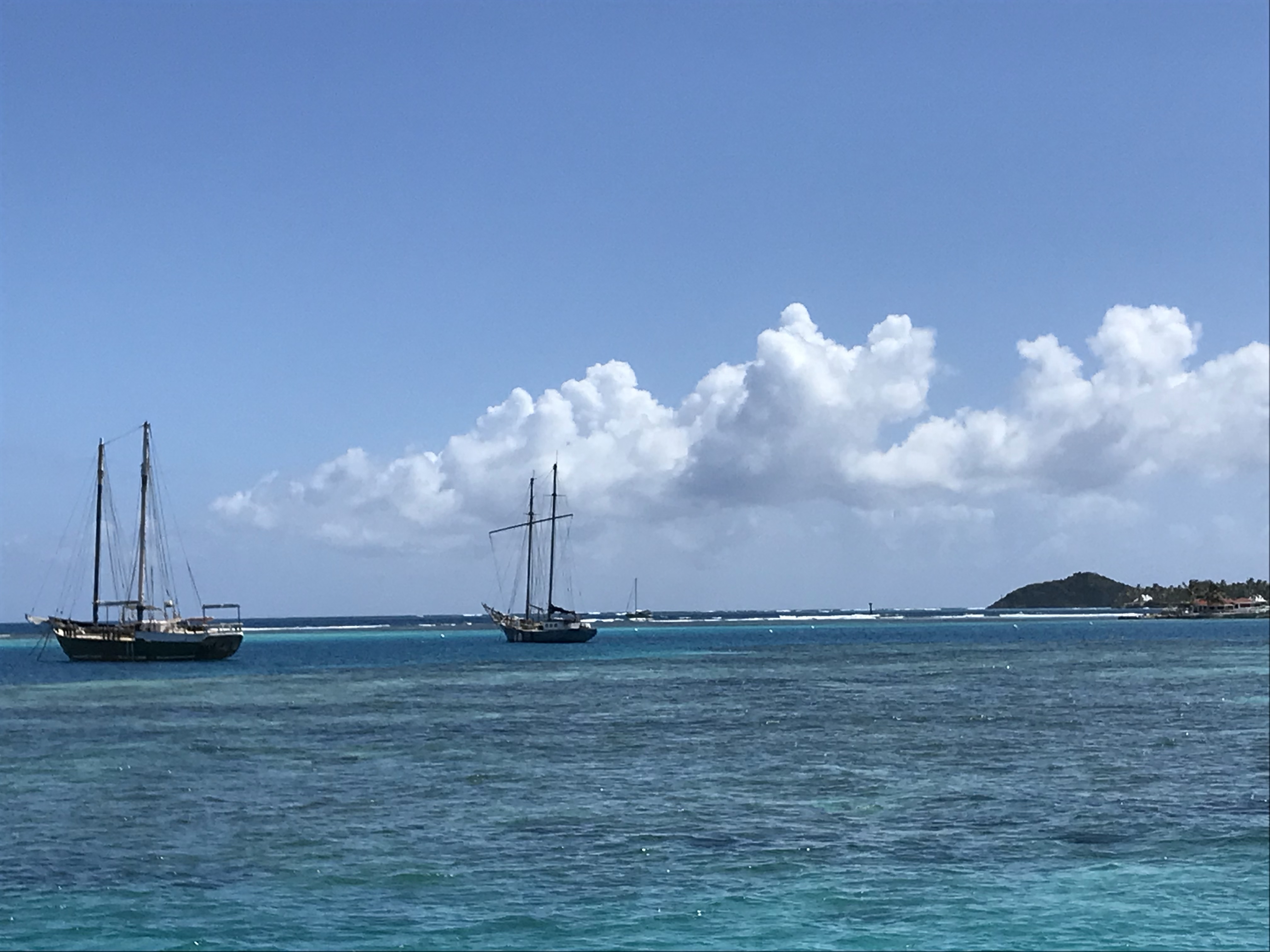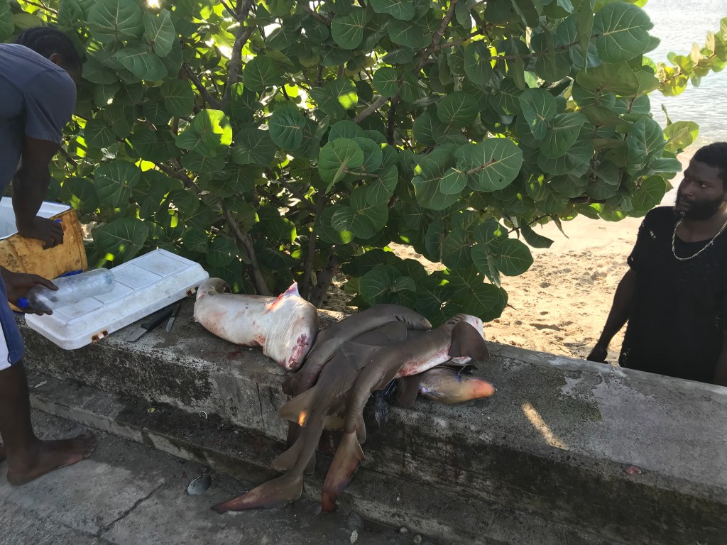 Fiske på vägen till Carriacou. Det nappade rejält men tyvärr för dåligt drag ! Han slet sig ! Nästa gång blir det kraftigt drag med rejäla krokar ! På Carriacou blev vi erbjudna småhaj! Inte i vår smak !
