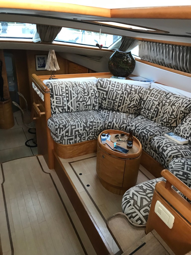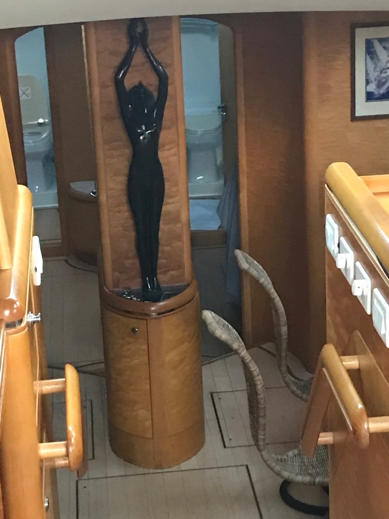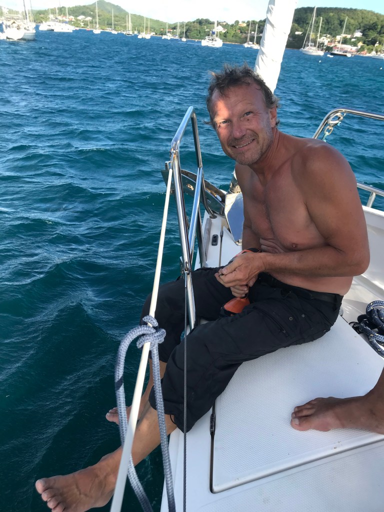 Vi blev inbjudna på en drink hos trevliga Bram och Anja från Holland som tittade till ” skeppet ” när ägaren inte hade tid att flyga till Martinique. Det var en hissnande upplevelse ! Allt var så extremt stort ! Allt från tampar till fendrar för att inte tala om maskinrummet ! Det var lika stort som hela Toga ! Ägaren och hans hustru seglar själva detta fartyg !