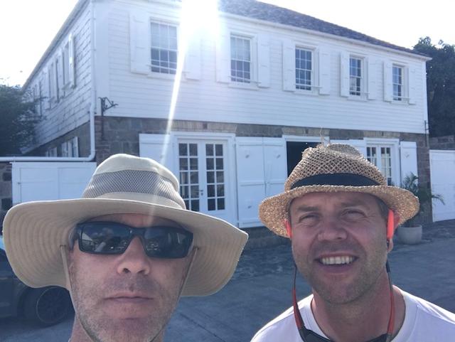 > Huset i bakgrunden året museum med tillhörande ” slavstuga ” . Johan och Peter är glada men lite orakade som gastar ska vara ! >