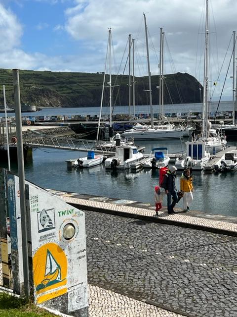 Förresten ska jag dit imorgon också med några svenskar som också är lite ensamma. (En mamma och två små barn som väntar på sin man på väg från St Marteen till Horta + en man vars familj har flugit hem och söker ny besättning )