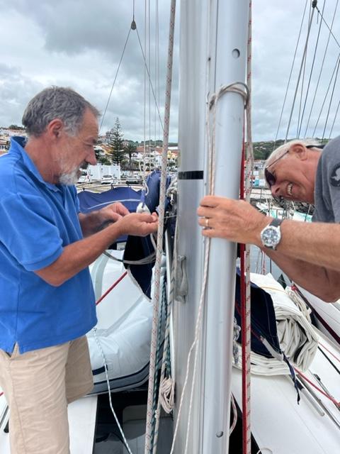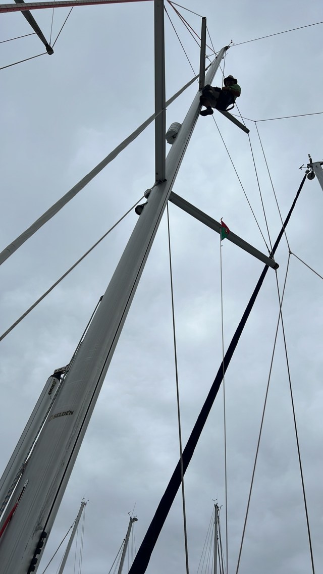 Harry skickade vi upp i masten för att få lazyjacklinan på plats