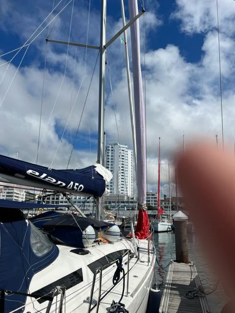 Vi körde med motor ett dygn till Sao Miguel och har blivit liggande några dagar för att invänta bättre vindar. Under tiden har vi fixat med både det ena och det andra. Jollen är uppumpad och ligger på tvären under bommen . Gennackern är upptrasslad och hänger på tork .