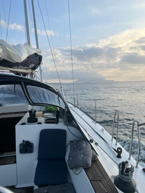 Efter en väldigt tuff motvind och dessutom en motström på 3 knop kunde vi se Klippan i fjärran. Vi stångades med vågorna och ström i ett dygn så farten var bara 2-3 knop . Vi hade gott om diesel men vi var ju ändå oroliga om det skulle räcka hela vägen fram . Tack Volvo Penta för att ni gör så pålitliga motorer ! Och tack autopiloten för att du jobbade så troget ! Och dessutom tack Thomas för att du ville segla med mig till Gibraltar !