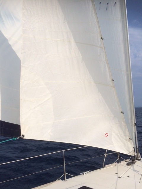 Här är kutterstagseglet hissat ! Det ska skotas hårt mot masten för att minska rullningen vid undanvind
