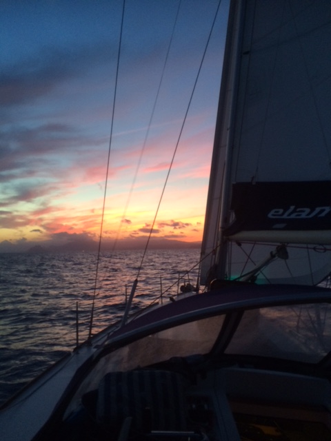 Arne o Lennart seglar i solnedgång på väg till Mallorca . Magiskt !